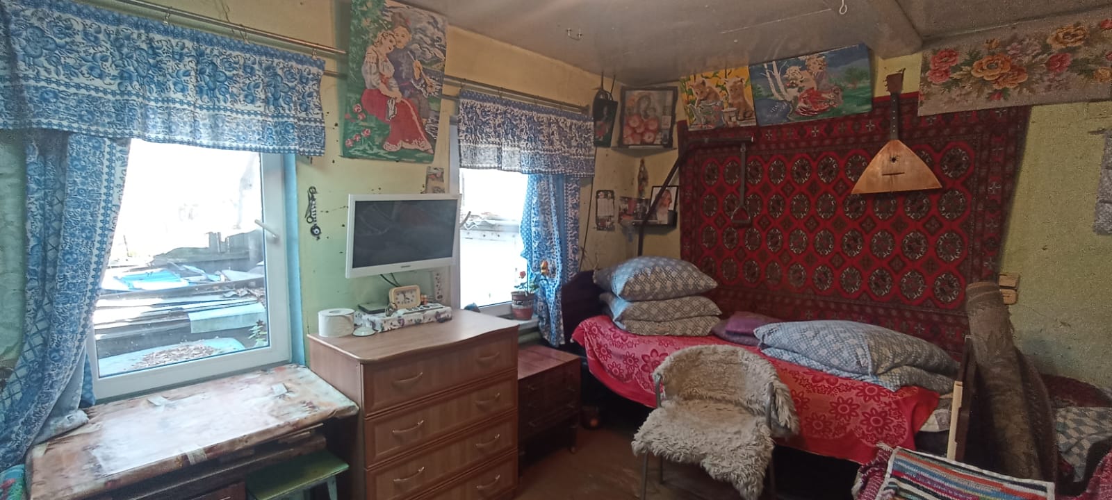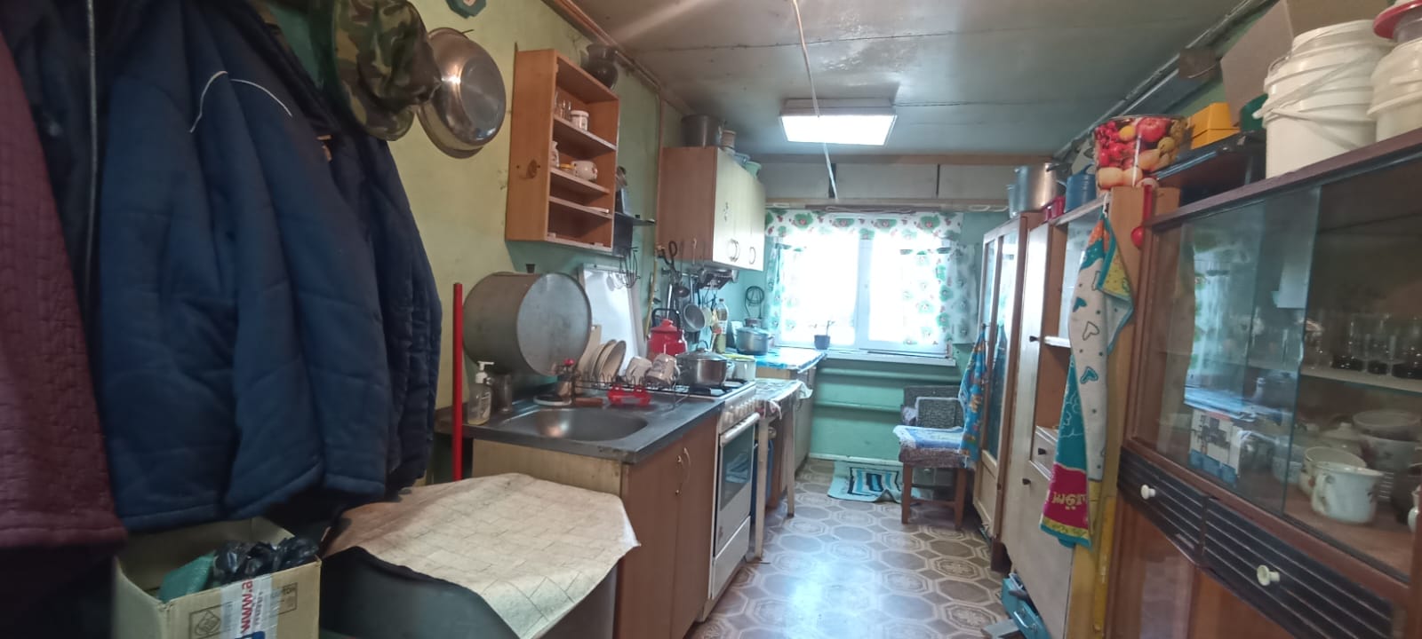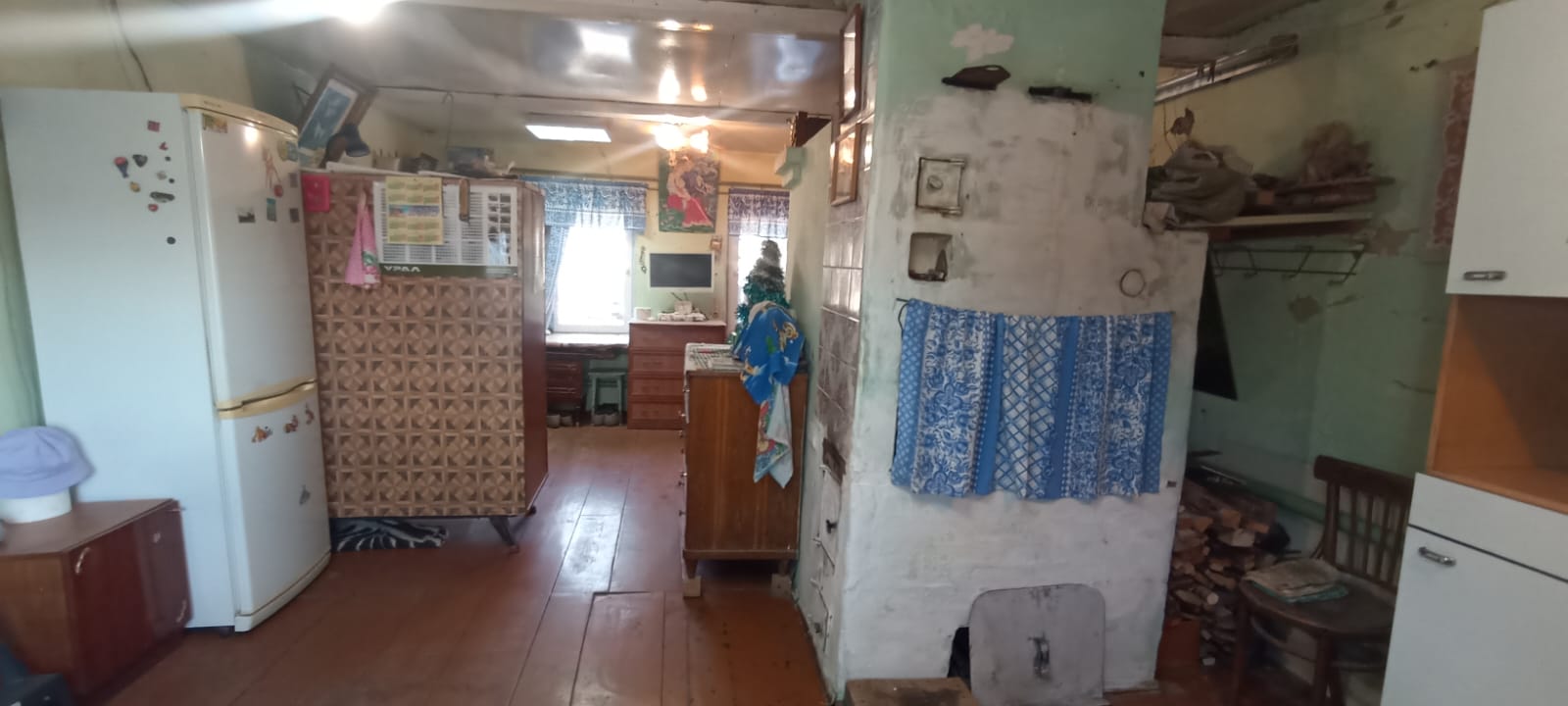 Отличный сруб (лиственница), сухой, крепкий, большой диаметр. Потолки в доме 2,40. К дому пристроена кухня (материал стен шлакоблок). Внутренний размер дома 7 х 7.50. Под всем домом просторный, глубокий погреб 1,7 м. В доме Русская печь в хорошем рабочем состоянии. Во всем доме евроокна. Дом теплый, сухой и очень светлый. Дом обшит плоским шифером.