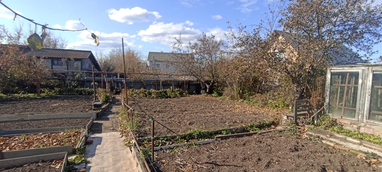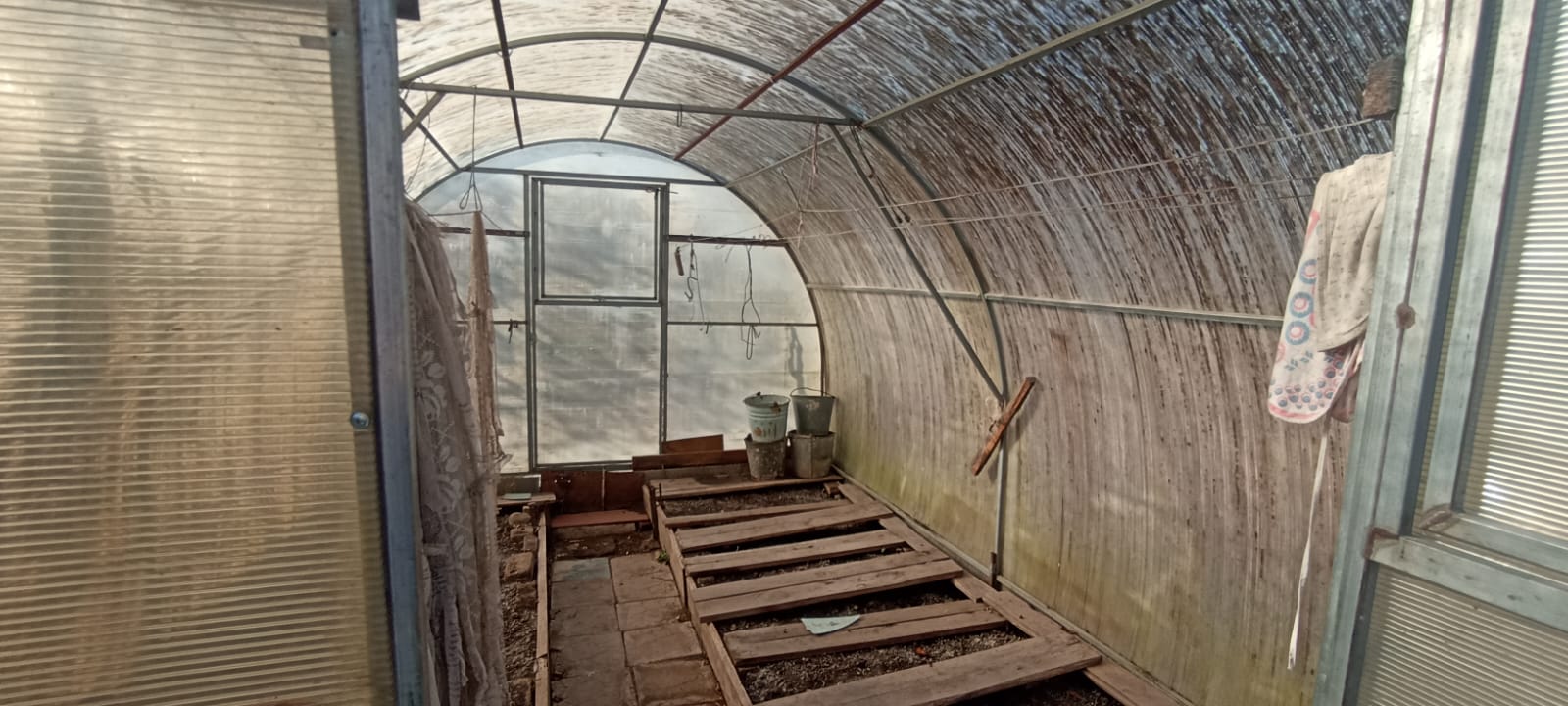 На участке 6,53 сот. надворные постройки, старенькая баня в рабочем состоянии, чистая и жаркая. Участок ровный, сухой. Много плодовых деревьев и кустарников, ухоженный огород.