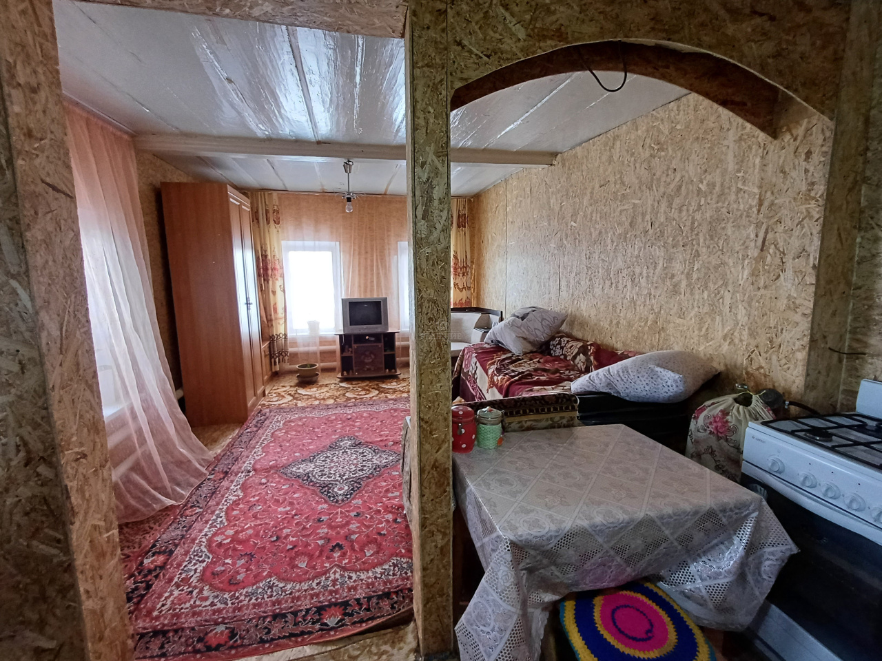 В доме: установлены евро окна по всему дому, пол частично линолеум , с/у в доме и на улице, заведен газ, отопление газовое- имеется действующая печь, центральный водопровод, электричество, огромный сухой подпол.